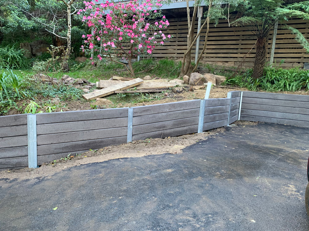 Timber Sleeper Walls: A cost-effective, classic choice using Treated hardwood for a classic, organic look to ensure durability against the damp Dandenong climate.